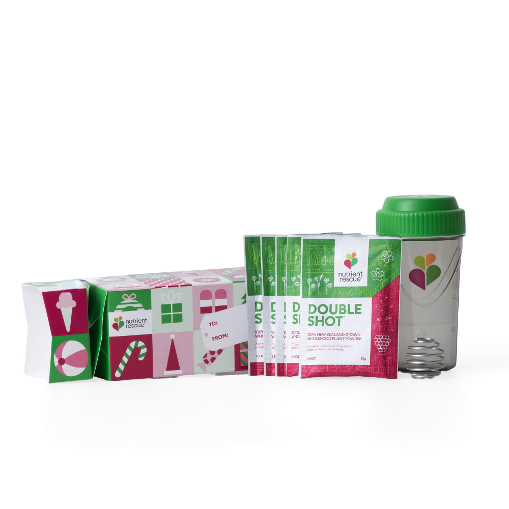 Including a Nutrient Rescue shaker and 5x Double Shot sachets, this limited edition Christmas gift is the perfect stocking stuffer for the festive sea