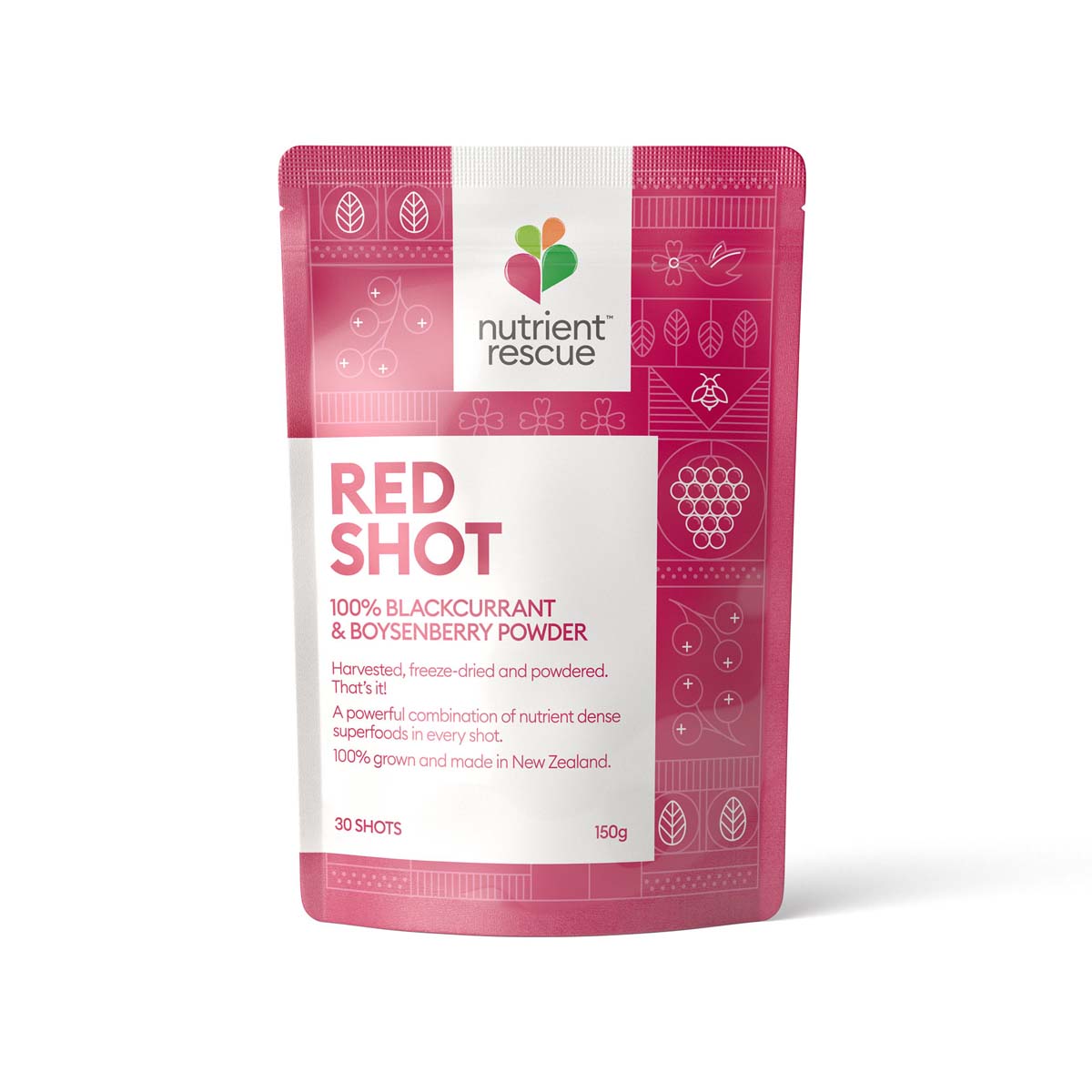 • A 30-day supply of Red Shot 150g: our famous blend of NZ-grown boysenberries and blackcurrants.